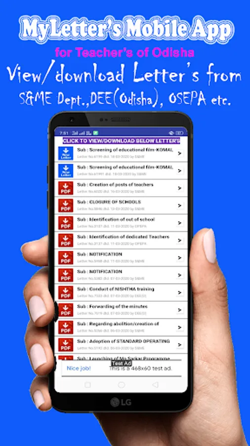 MyLetter’s is free, secure, beautifully designed, universal official letter receiving app for the teachers of Odisha. View/download official letter’s from S & ME Dept.(O), Directorate of Education,(O), OSEPA, etc and other official letters. MyLetter’s app send notification to the users for every new official letters, Education Information, School Holidays reminders etc.