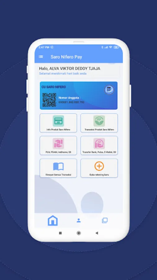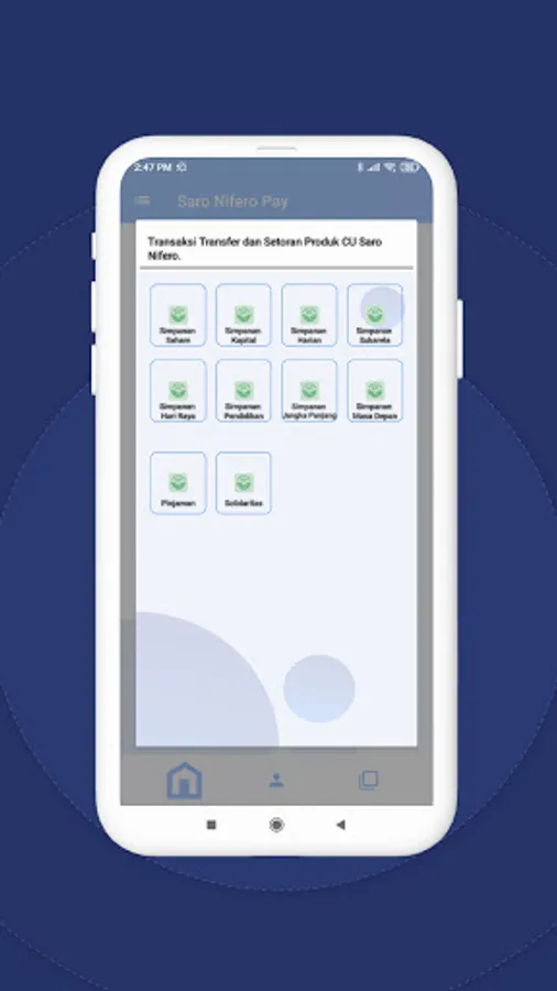 Saro Nifero Pay is a mobile application specifically intended for members of the Saro Nifero CU so that it can make it easier for members to make transactions wherever and whenever.