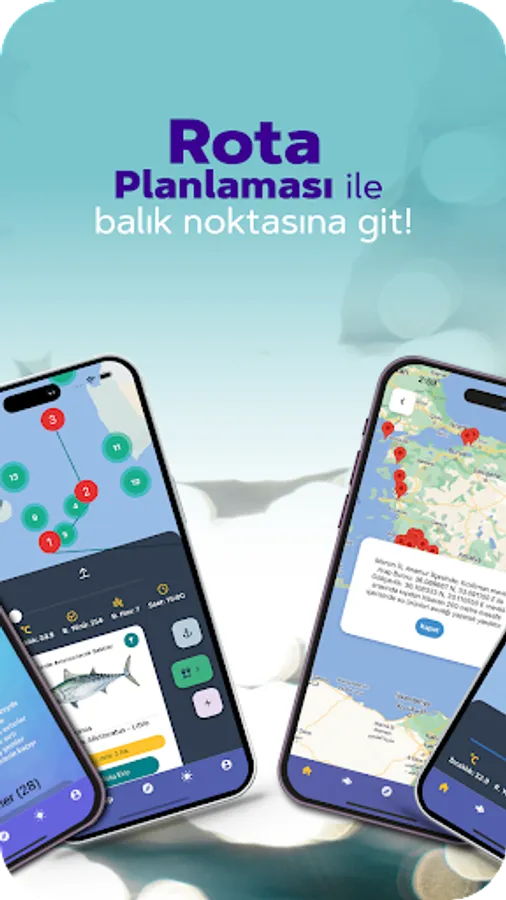 Fish spots, fish types and types, weather forecast, live navigation and navigation support, mobile anchor support, instant banned areas map, angling time and dates and many other features, BANO - Fish Point is with you.