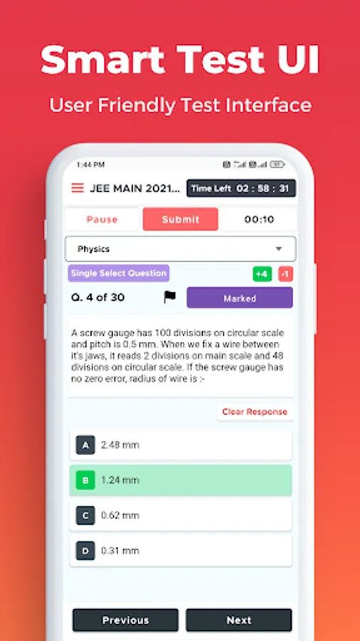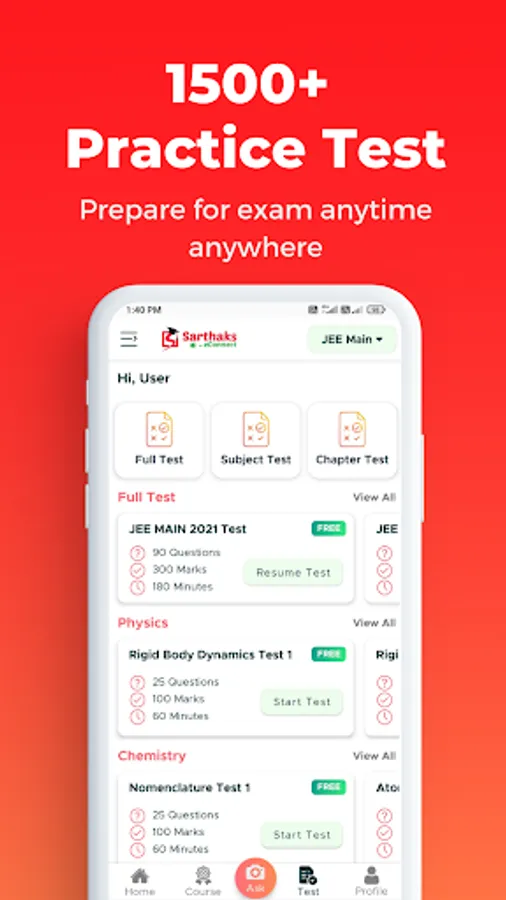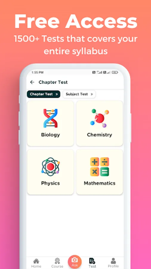 • Full Syllabus Test, Subject Test, Chapter Test, Live Test & Customised Test in Physics, Chemistry, Maths & Biology for Class 7, Class 8, Class 9, Class 10, Class 11, Class 12, IIT JEE Main, NEET, CBSE BOARD & State Board Exams available in app