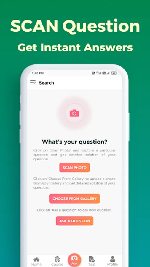 • Search Question through Voice, Text & Image