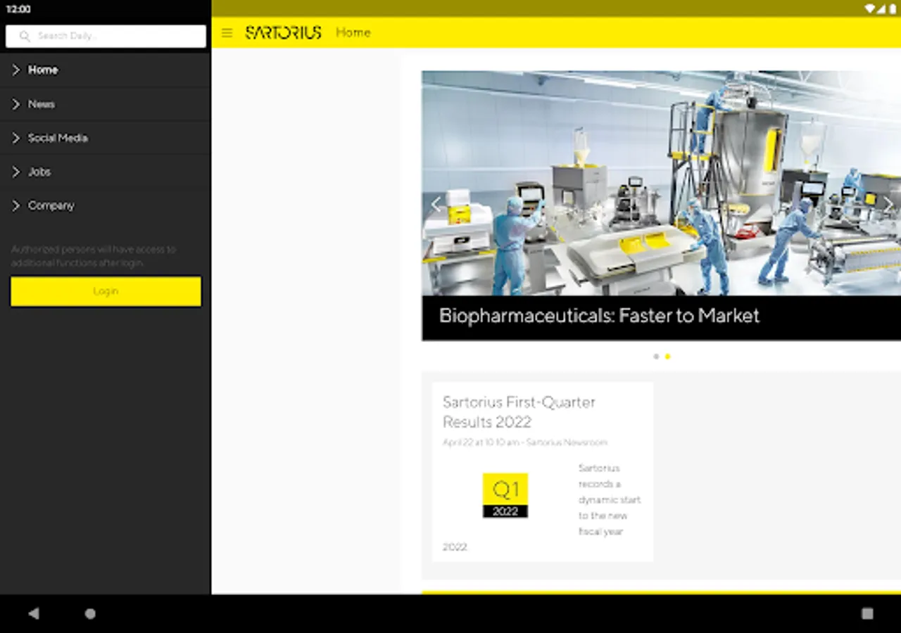 The Sartorius Daily app provides you with information about Sartorius and keeps you up to date with the latest company news.