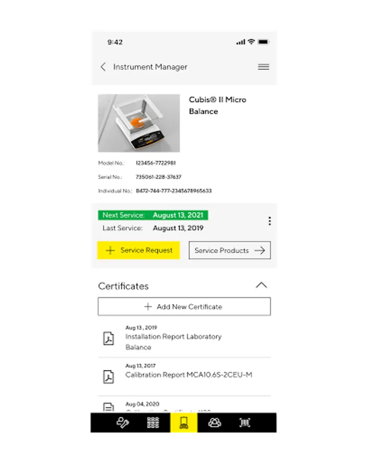 Whenever you need maintenance or repair for your instruments, you can use Service Connect to easily send a service request to Sartorius in just a few steps. To do this, select your relevant instrument previously entered from the Instrument Manager, describe the reason for your request and add your contact details. Your service request can be sent at your own convenience and a member of the Sartorius Service team will contact you as soon as possible.