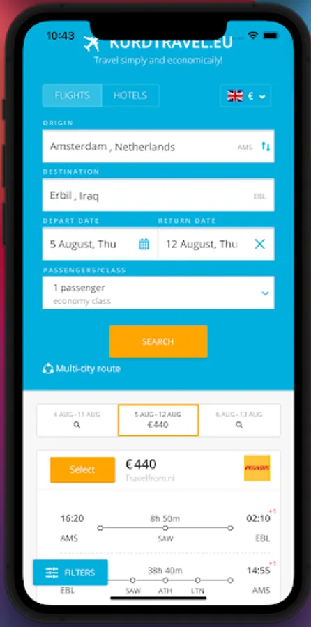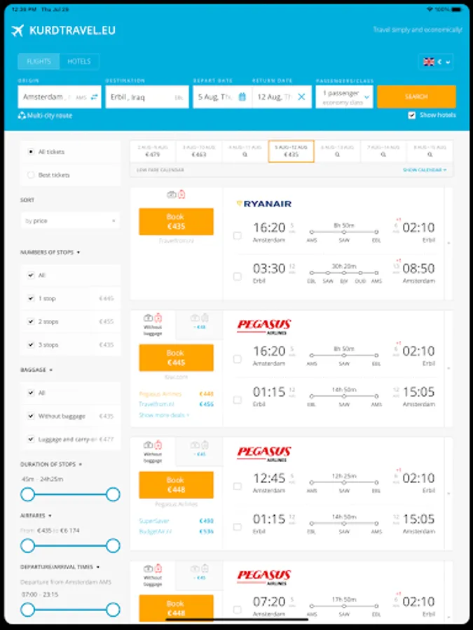 Know what you’re looking for? Filter your flight search by flight duration, airline, number of stops, travel class, departure and arrival times. Easy.