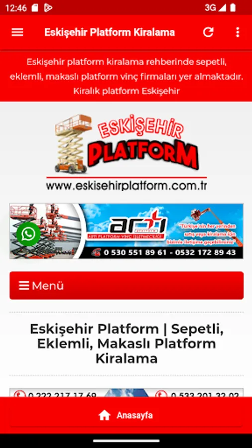 There are basket, articulated and scissor platform crane companies in the Eskişehir platform rental guide. Rental platform Eskisehir