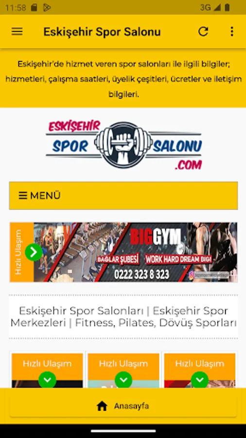 Information about the gyms serving in Eskişehir in our application; services, working hours, membership types, fees and contact information.