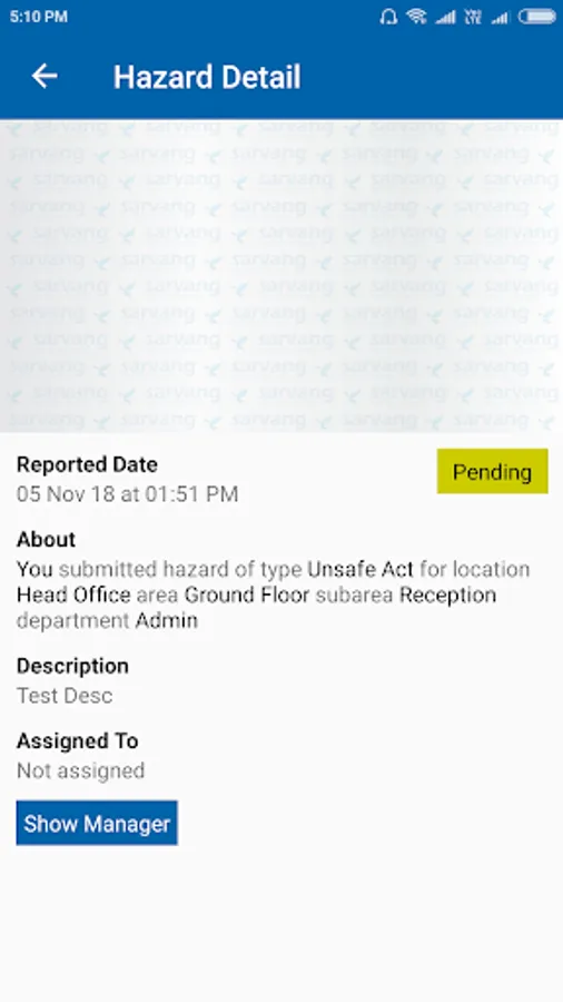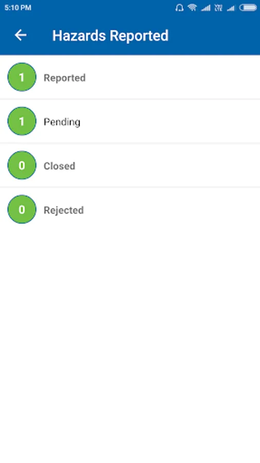 Report Hazard - The most interesting & helpful Section to report an unsafe condition or act.