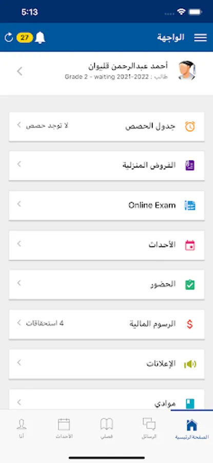 Please note: If you have multiple students studying in our school and the school records have the same mobile number for all your students, you can switch the student profile in the app by clicking on the student's name from the left slider menu and then switching the student profile.