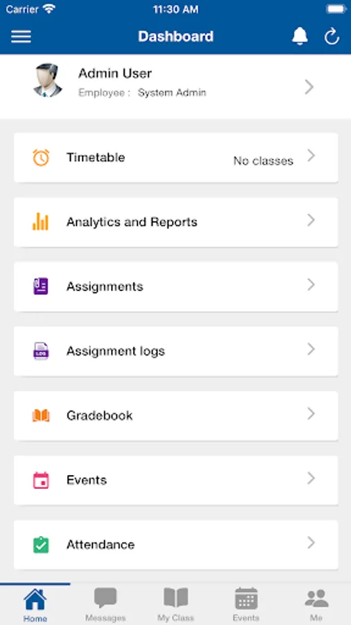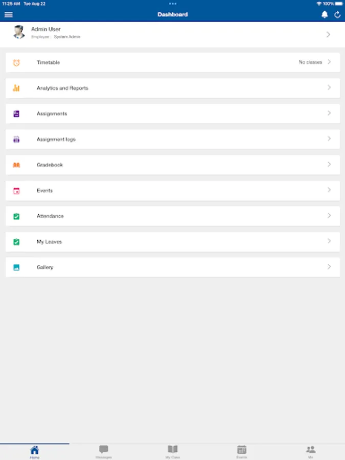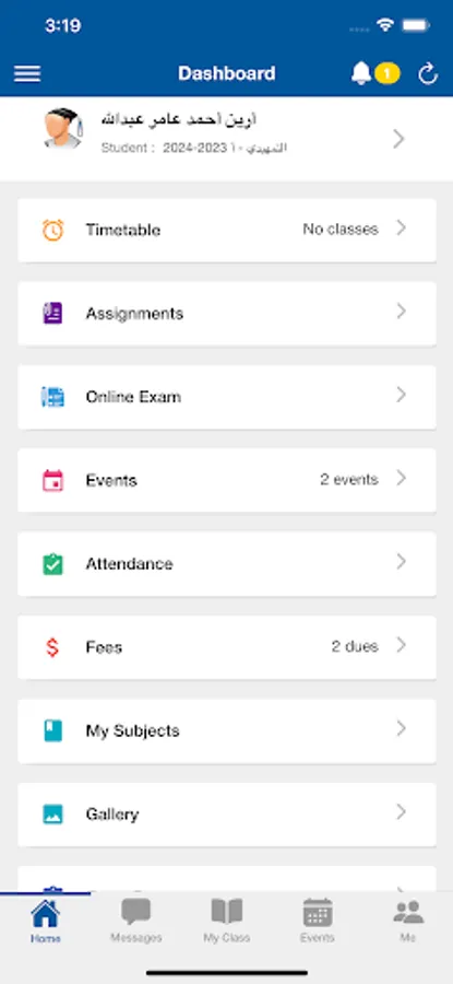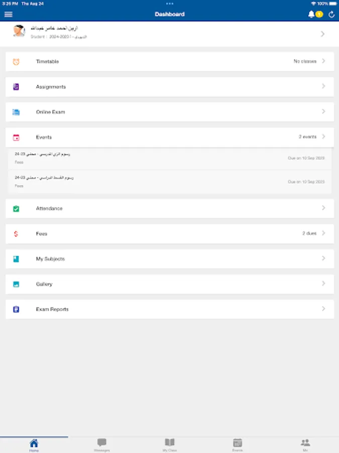 الأحداث: سيتم إدراج جميع الأحداث مثل الامتحانات والعطلات ومواعيد استحقاق الرسوم في تقويم المؤسسة. سيتم تذكيرك على الفور قبل الأحداث الهامة. لدينا قائمة العطلات في متناول اليد تساعدك على التخطيط لأيامك مقدما.