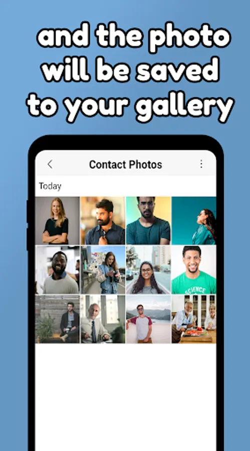 Our simple contact photo saver enables you to restore photos from contacts and save to your gallery. Finally, you have a simple tool that recover contacts photos, import and save photos to your gallery.