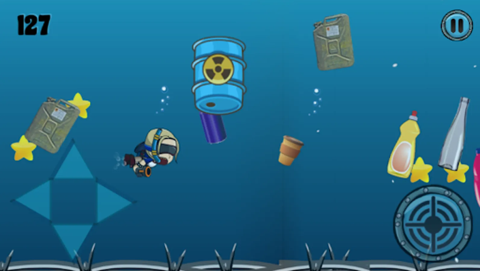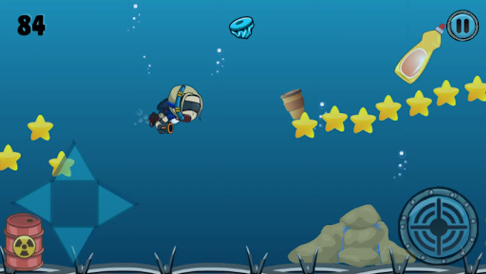 Help the Sea Cleaner to clean all the dirty things in the ocean. Destroy the radioactive containers and wastes which are bottles, milk and coffee cartons, cans and more ...