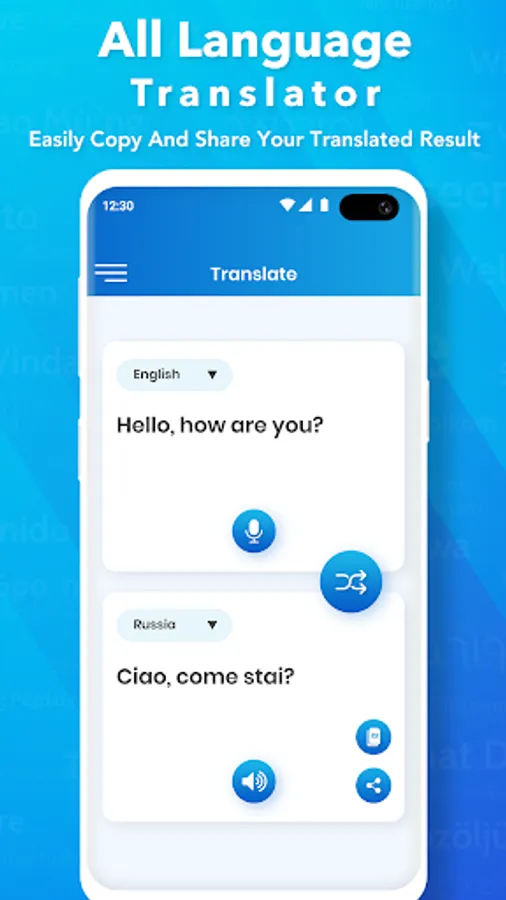 Language Translator Free, Voice Text Translate All is a leading/professional Translator App to translate between 100+ languages using features like text translator, voice translator, text to speech, photo translator. Free translation app is recommended for you that is helpful when you are out of the country or in a place where you do not know the local language or in foreign. Language Translator, Free Voice Translation is a popular app that allows you to speak and translate bilingual conversations in multiple languages.