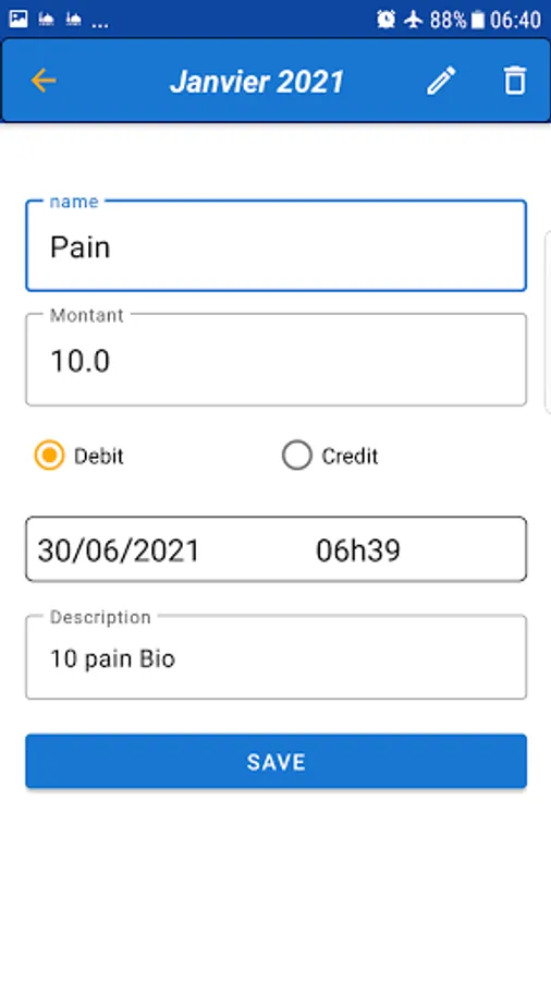 - Addition of the type of transaction (transfer, withdrawal ...)