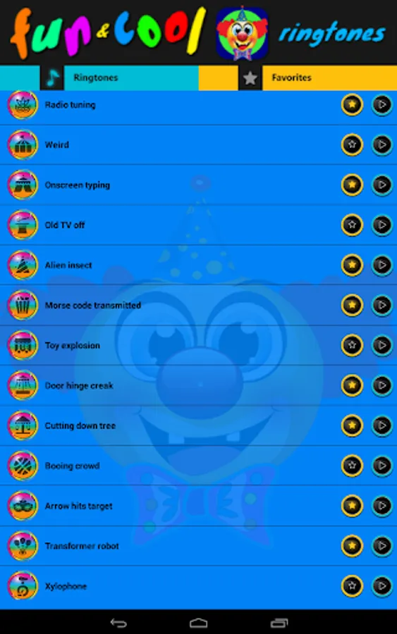 There are plenty funny alarms, comedy ringtones, funny sms tone, creepy and crazy sounds and a lot of more…Get this app and your devices will have unique sound. Listen ringtones, than set as default ringtone, contact ringtone, default notification, default alarm, delete ringtone, select and mark your favorites - or just have fun!It is always advisable to have a good time.