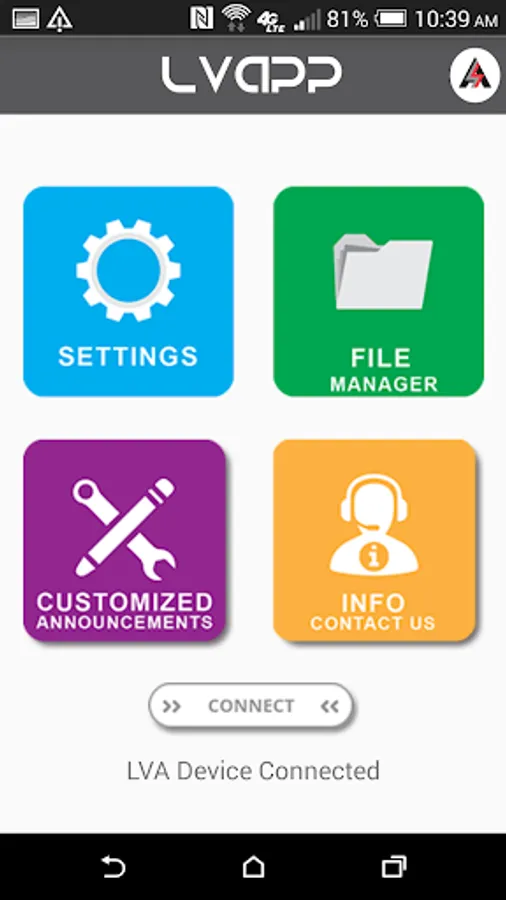 LVAPP is an android application designed to control your LVA (lift voice announcer). You will have full control of your LVA, set up all parameters and add music files by simply connecting your phone to your LVA via USB.
