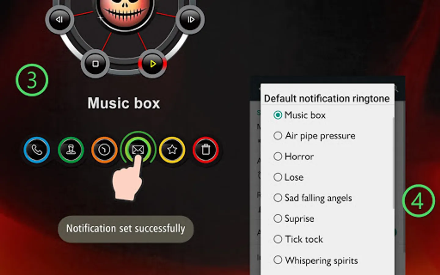 Have fun, be unique in company when your phone start ringing or you got a notification. Surprise and scare them whit this creepy app.