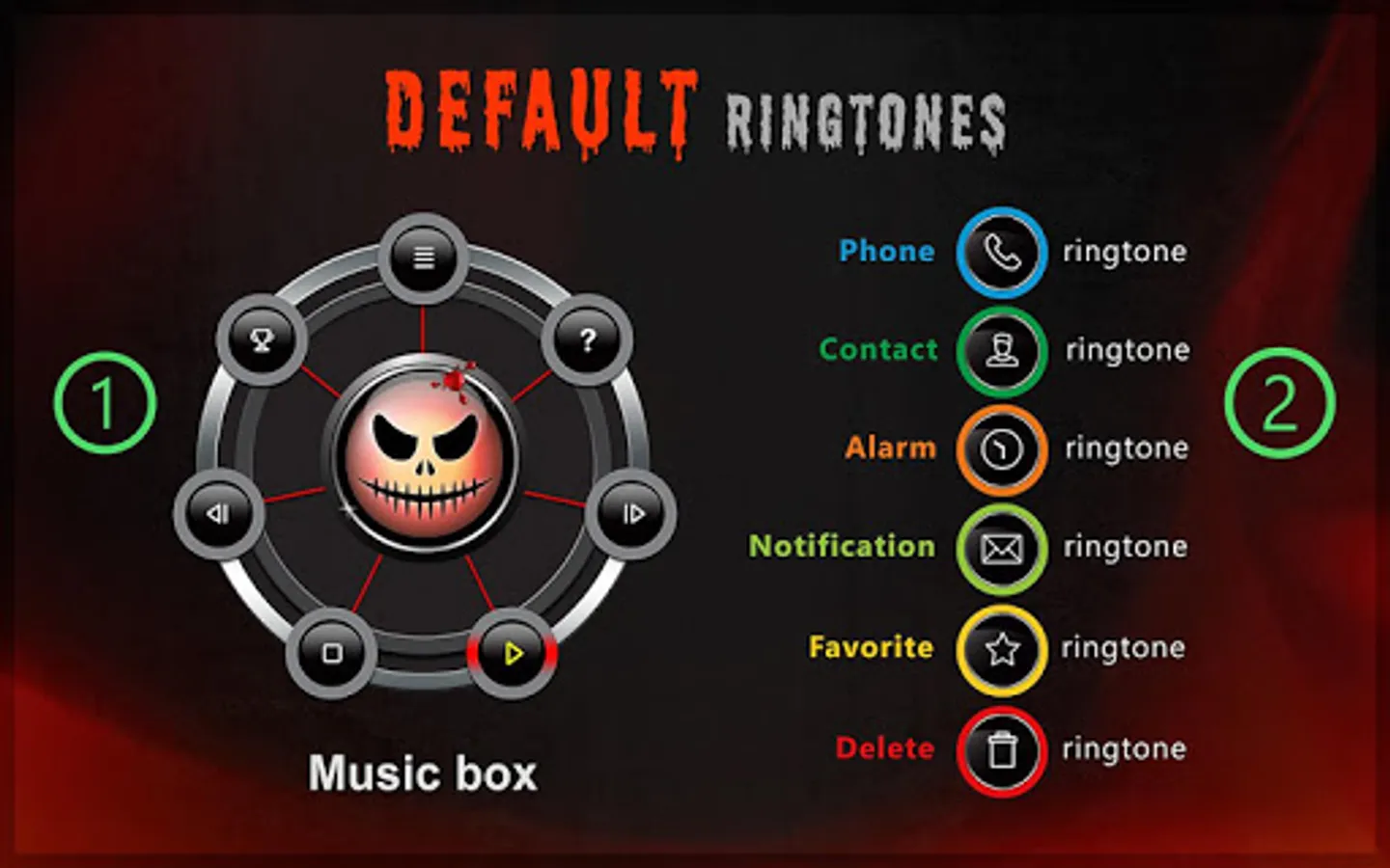 * Make a default ringtone, personal contact ringtone, default notification, default alarm, delete ringtone, select and mark your favorites;