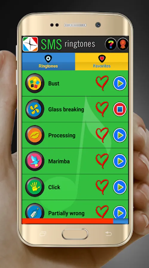 high quality, clear and the best message tones and sounds that can be used also as ringtones, notifications or alarm sounds. You will love this selection of popular SMS sounds. This easy-to-use app will make you want to personalize your phone again and again, depending upon your moods, the choice is really big. Really cool sms ringtones, unique and interesting! You are tired of the classic tones, you want something new and different what will extract your SMS ringtone? With this app your phone will have always unique and different message tone. Cool, funny, popular, most wanted, most rated, the best of the best! There is always some cool SMS ringtones for everyone in this app. Enjoy...