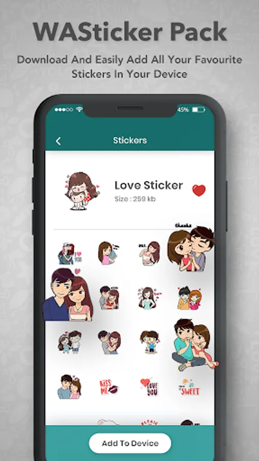 Love Stickers and Romantic Stickers for WAStickerApp provides Sticker Pack with many categories like Love Couple Stickers, Romantic Sticker, Text Stickers, Fairy, Teddy Love Stickers, Love Quote, Girls Nick Name Stickers, Boys Nick Name Stickers and many More.