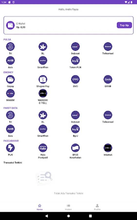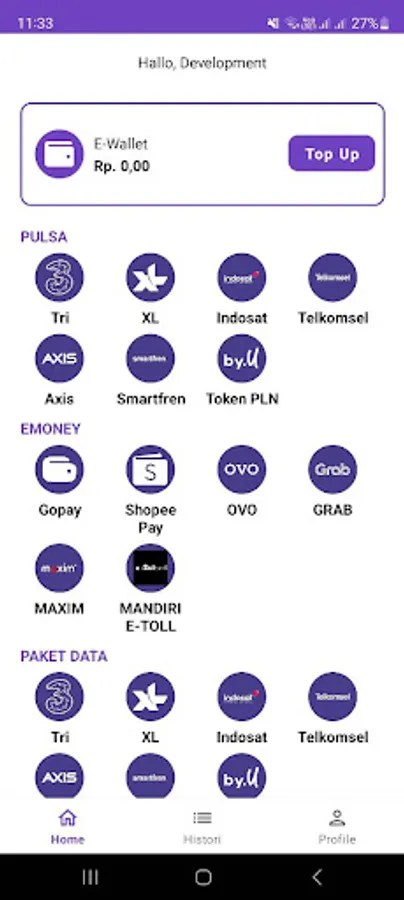 - Prepaid: Credit & data packages from all operators, PLN tokens, game vouchers, electronic money (DANA Balance, Gopay Customer & Driver, Grab Driver, LinkAja, OVO, ShopeePay), Google Play Voucher Codes