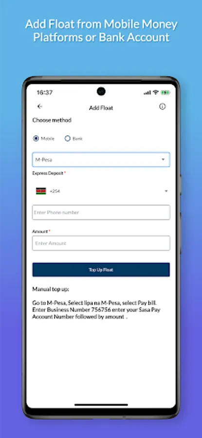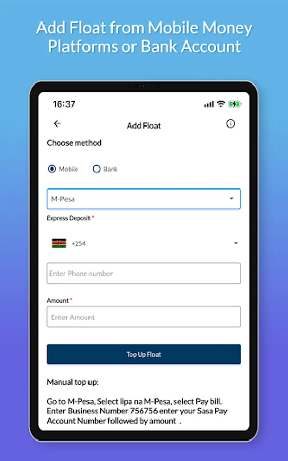 SasaPay with all necessary documentation as guided by the Agency Business Policy.