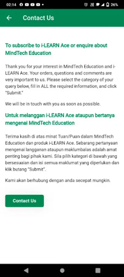 • Contact the MindTech Education support team for any enquiries