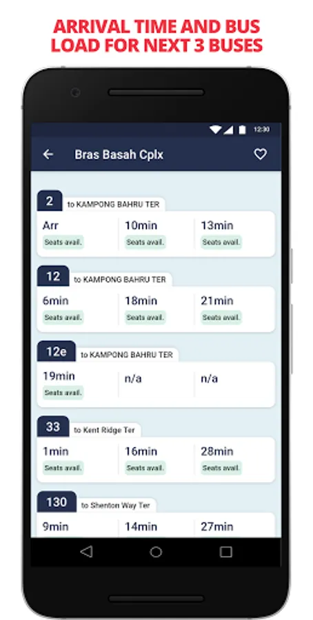 Never miss a bus again with our advanced bus tracking system, which displays the next 3 bus arrival times for each bus service at your nearby bus stops. You can also save your favorite bus services for quick and easy access.