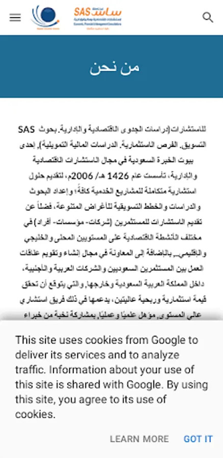SAS Consulting (economic and administrative feasibility studies. Marketing research. Investment opportunities. Financing financial studies), one of the Saudi expertise houses in the field of economic and management consulting, established in 1426 AH / 2006AD, to provide integrated consulting solutions for all service projects; Preparing research, studies and marketing plans for various purposes, in addition to providing advice to investors (companies - institutions - individuals) in various economic activities at the local, Gulf and regional levels.
