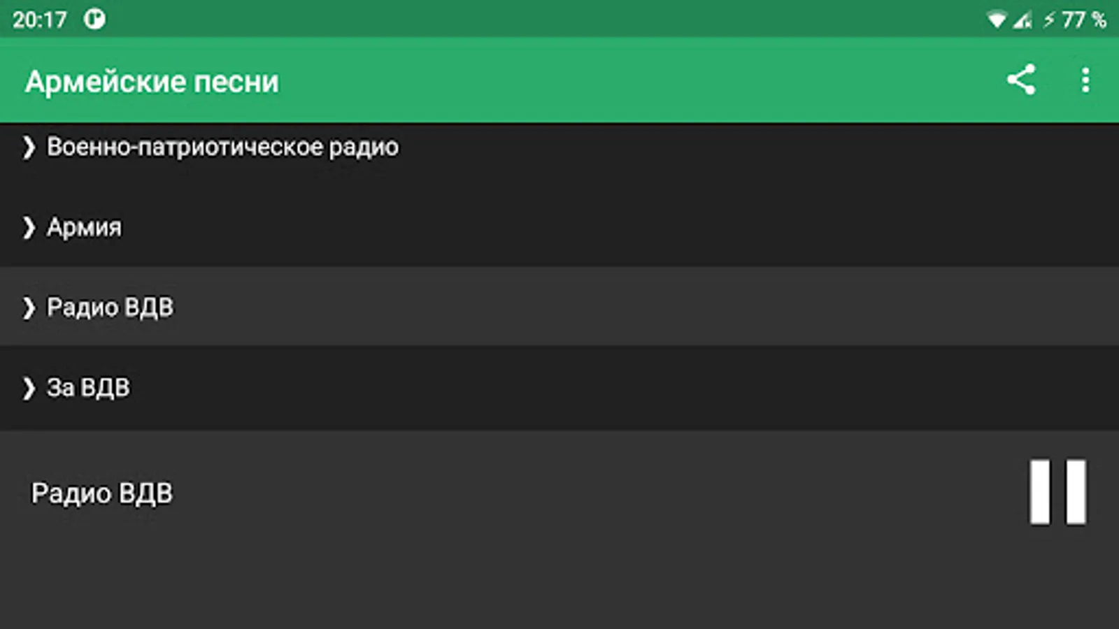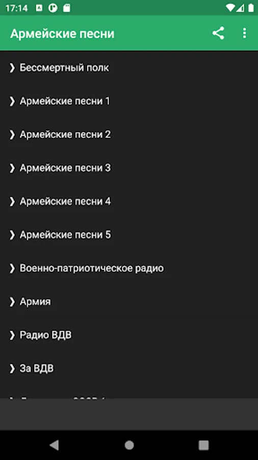 The radio channel is dedicated to army songs and everything related to this topic. Most of the time on the air there are songs about the army, airborne forces, soldier's life, you can hear compositions on military topics. It is difficult to argue with the fact that such music evokes a feeling of patriotism, pride in one's homeland. All these songs are imbued with their special unique romance. There are very serious themes in the texts of army songs. They reflect the essence of a difficult soldier's life, tell about the terrible military events that at any moment can take your life or the life of your comrade-in-arms. Army songs occupy a very important place in the national musical culture; after listening, they remain forever in the hearts of people.