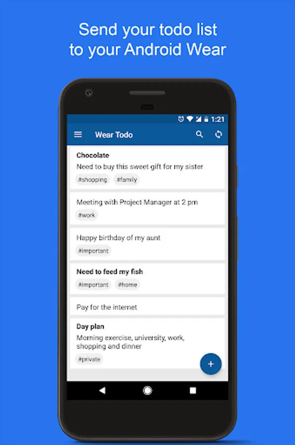 We try to help you organize your things in one place with really easy interface and useful functionality also with opportunity to send it to your Android Wear.