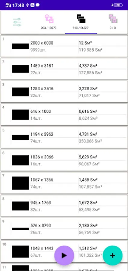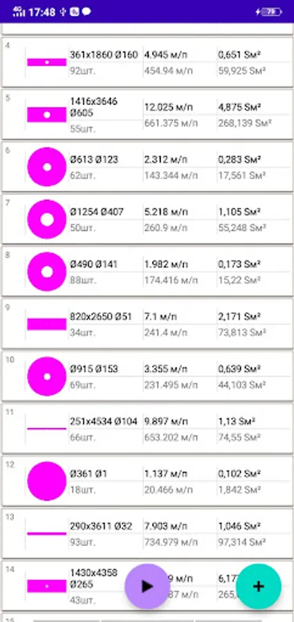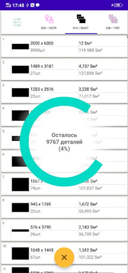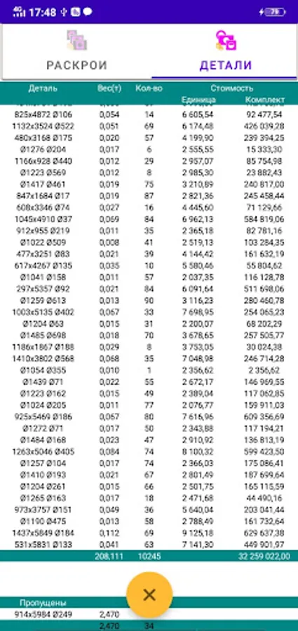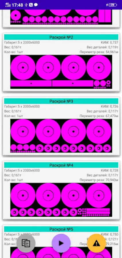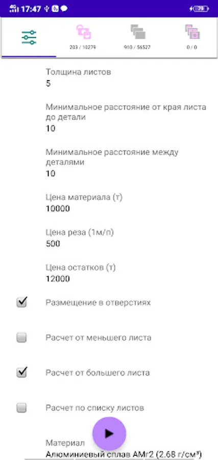 The application allows you to cut rectangular and round parts, taking into account various settings
