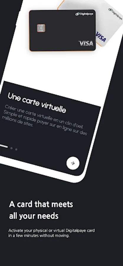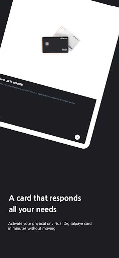 Download the Digitalpaye application and activate your physical or virtual Digitalpaye VISA card for online payments, transfer money from your card to a mobile money account, from your card to a bank account and pay instantly in stores and on online sites/applications. Use Digitalpaye for mobile top-ups, DTH top-up, movie tickets, post-paid bill payments, utility bills such as water, gas and electricity bill payments, and payments fixed telephony, broadband and insurance. Make an IRCTC train reservation, book flights and buses with just a few clicks.