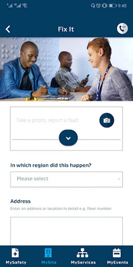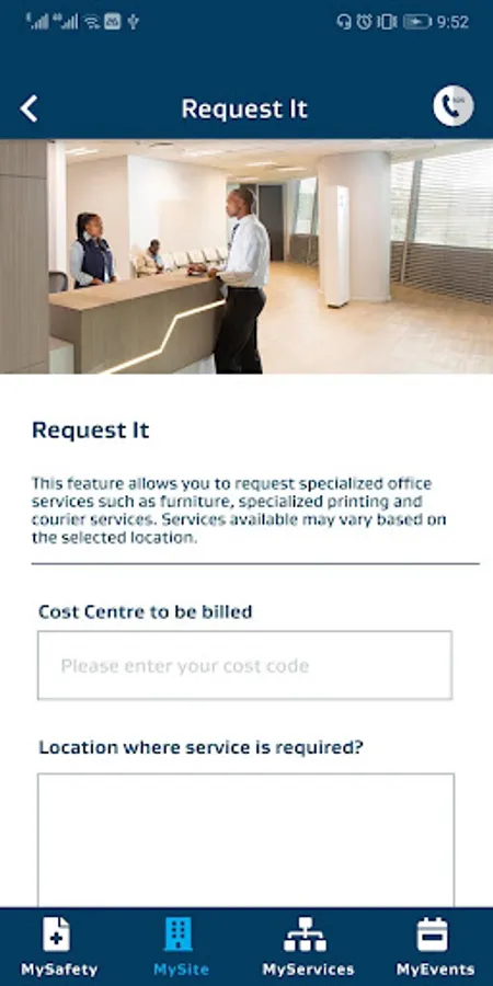 Select your preferred Sasol site from a pre-defined list to access services available for the selected site. NOTE: Depending on the site that selected, the services displayed may vary, as not all services and features are available at all sites.