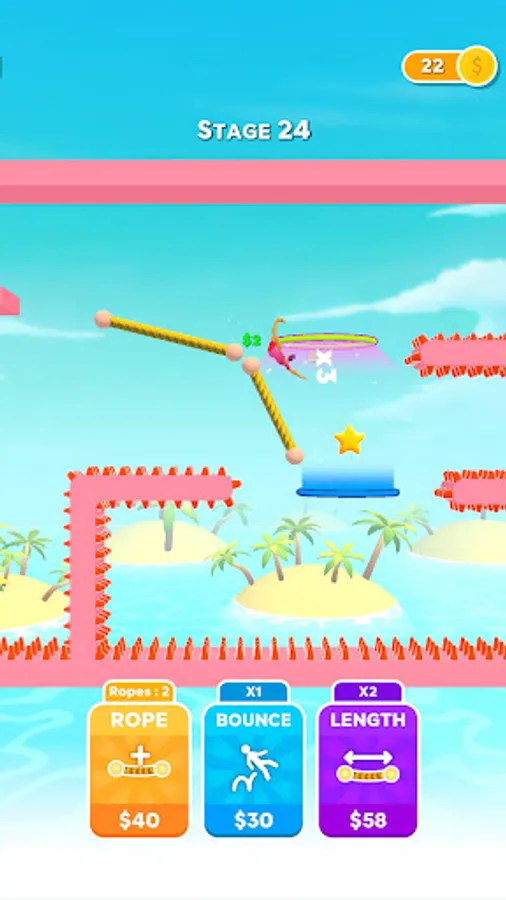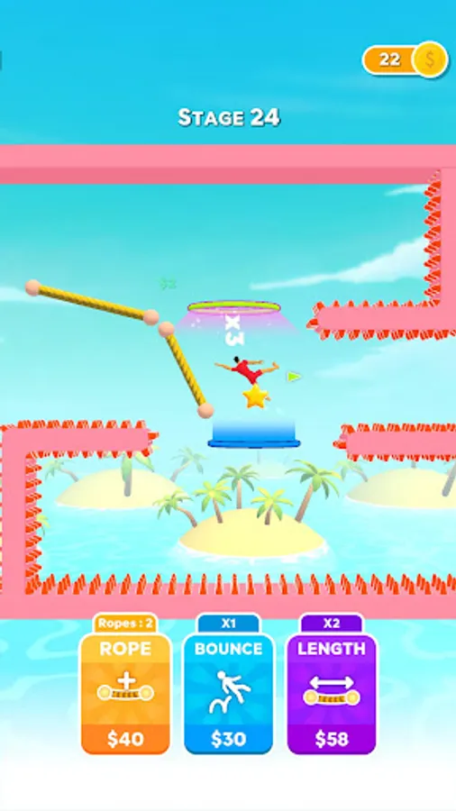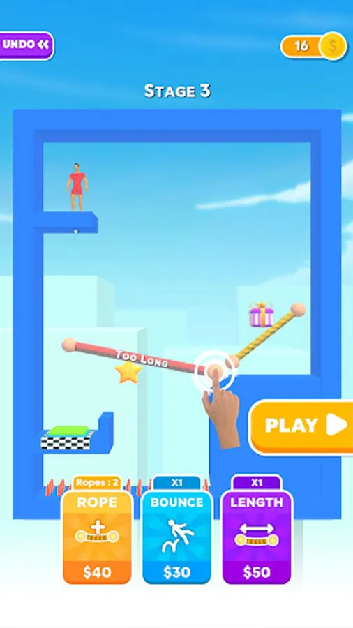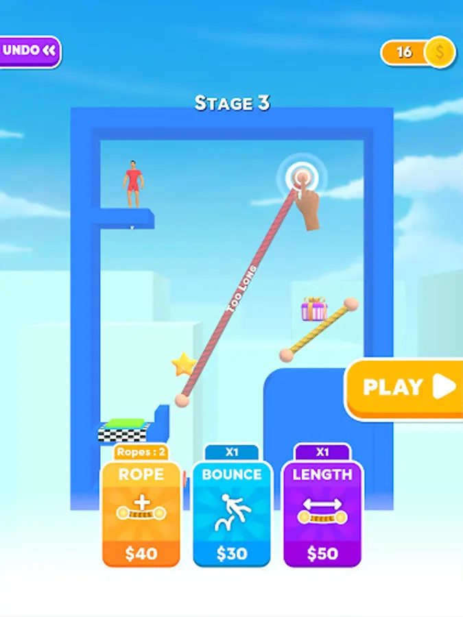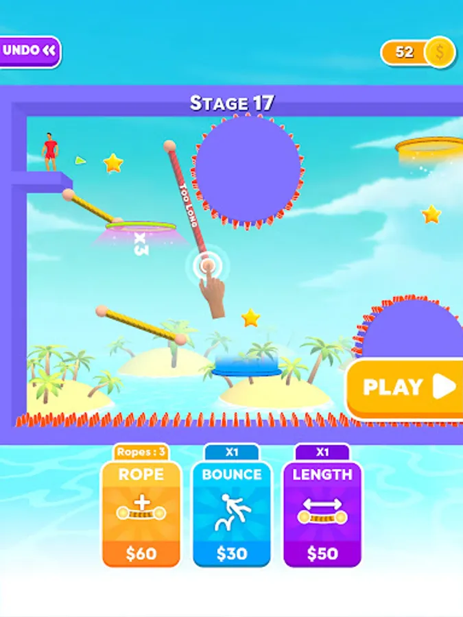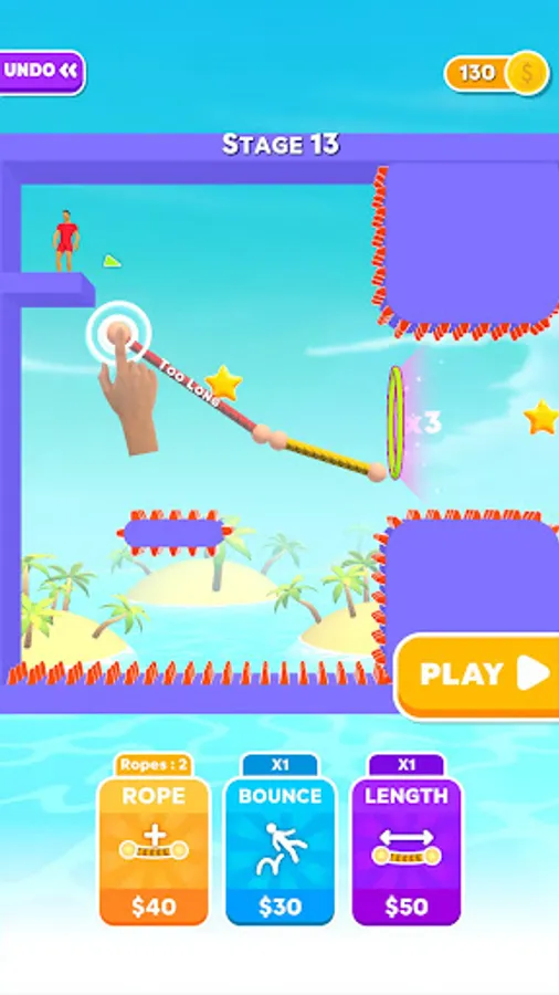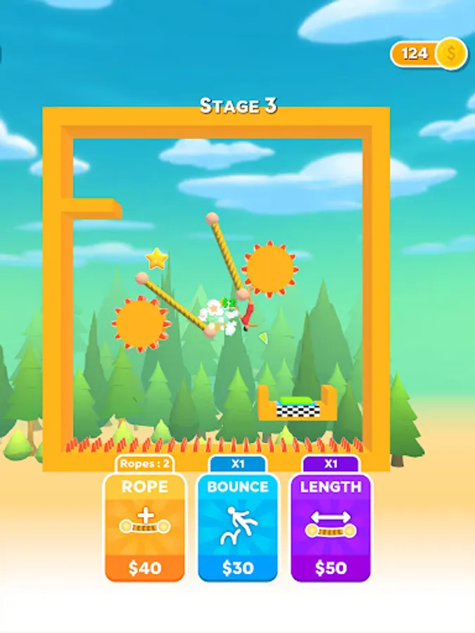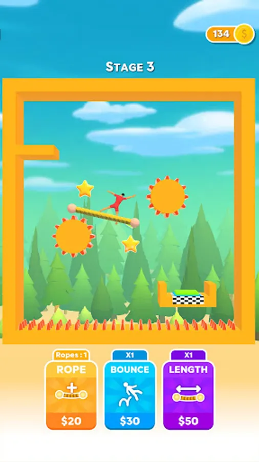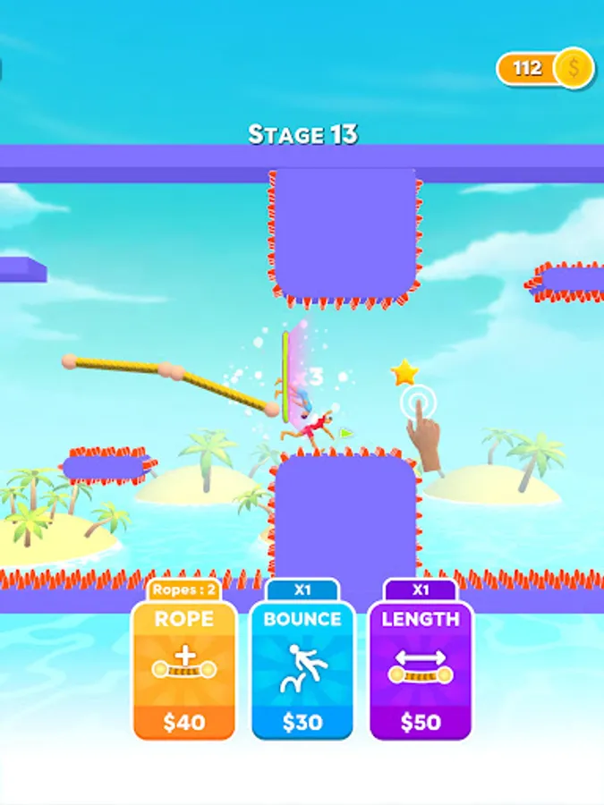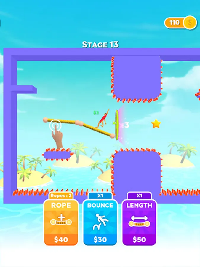 Use your fingers to place the ropes. Place enough ropes to get the character to the finish line