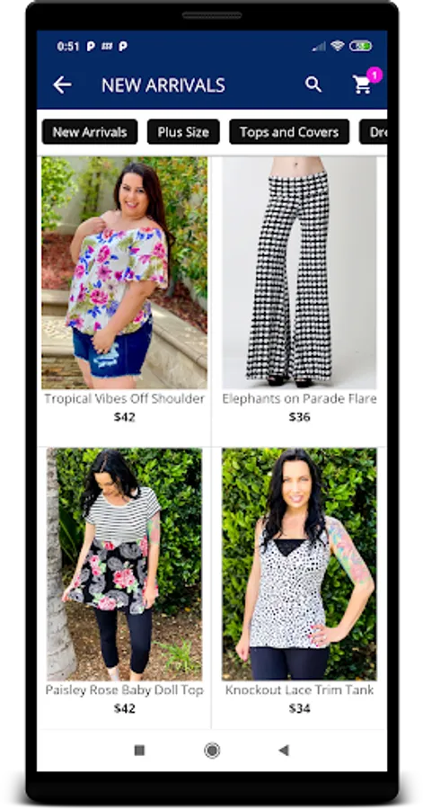 Fun, fashionable clothing for women and children of all sizes! We offer tons of variety in top sizes Small-3XL and bottoms 0-24W for women, and all sizes in kids! We have accessories, shoes, and wellness items as well!