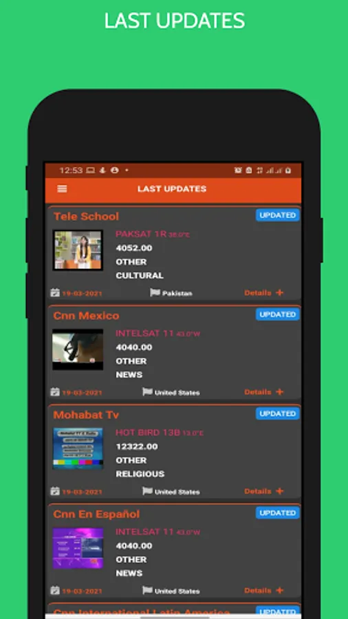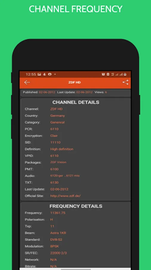 * Provides a full detail of the channel frequency, Satellite, position, package and more other information.