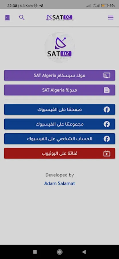 The "cccam SATDZ" application is the best application in the field of satellites. It contains a cccam generator, a section for match dates, and a section for the blog specialized in everything new in the world of SAT and servers.