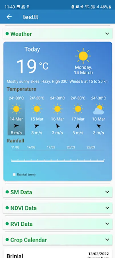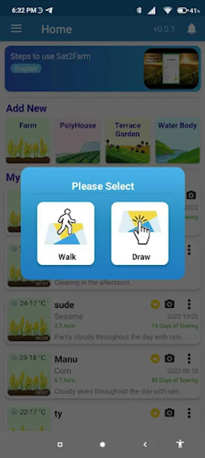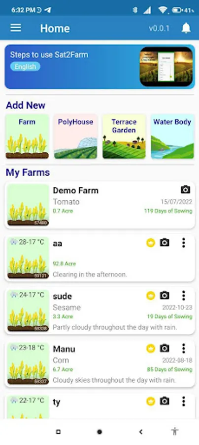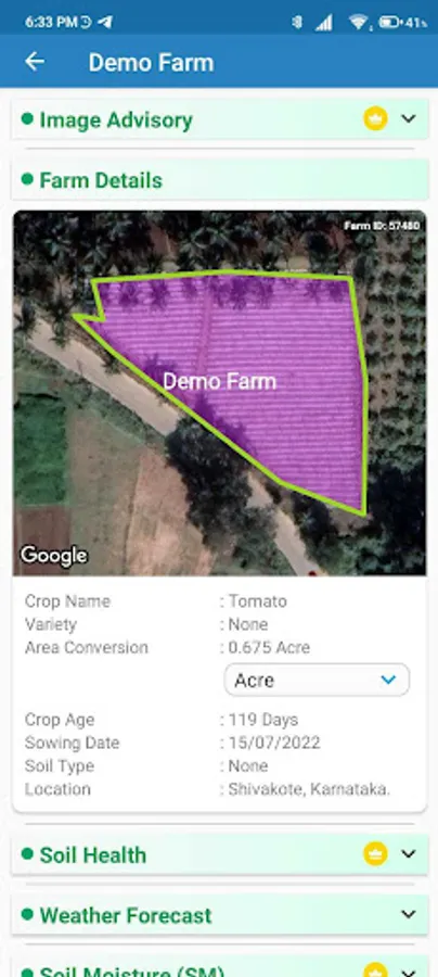 Latitude Sat2Farm mobile application, a satellite-based agricultural smartphone application, is mainly developed to help the users for understanding the farm health, providing irrigation advisory as well as dealing with the weather forecast. It is a simple application whereas the user plots his/her farm boundary and the requirements about the farm are provided through the same.