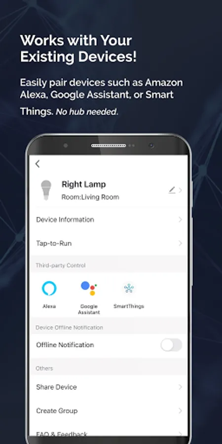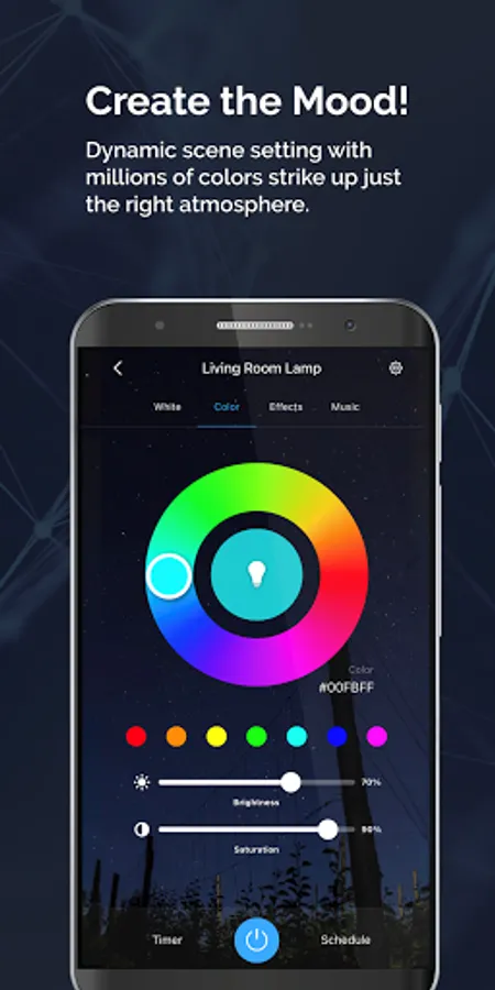 Create the mood. Dynamic scene setting with millions of colors strike up just the right atmosphere. Tone the room, dim the lights, own that personal space! Combine color changing products, light settings, groupings and electronics to personalize the moment.