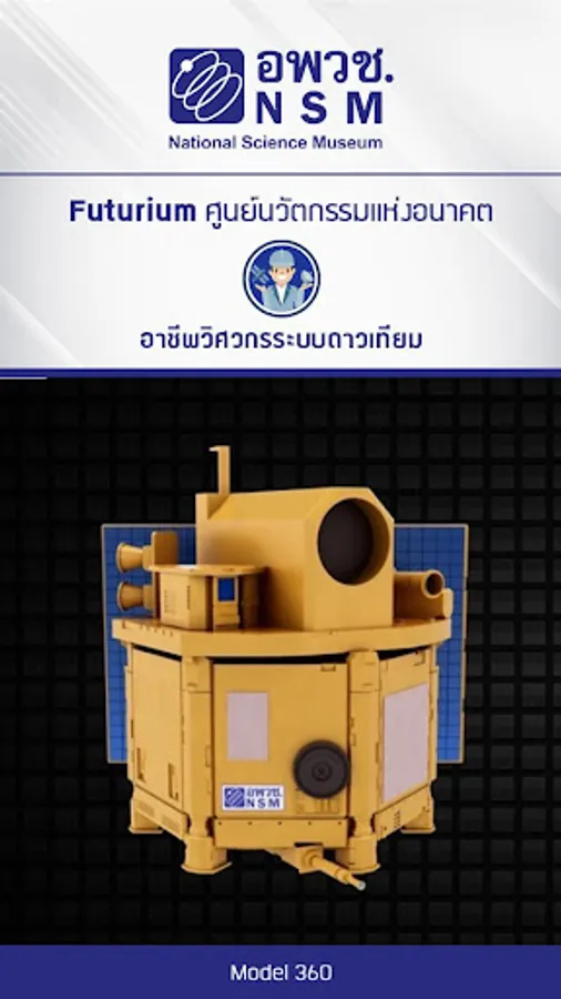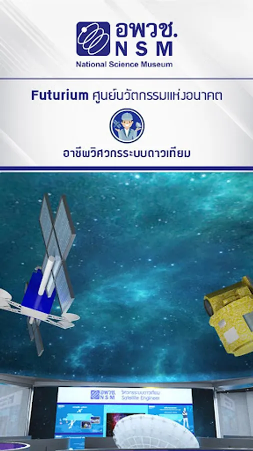 In a 360 degree format, you will find a professional satellite system engineer (Satellite Engineer) working on the control of all operations and operations on satellites, whether it is calculating the orbital pathway. Planning for photography Satellite signal transmission, as well as analyzing the various conditions that appear on the monitor to plan for the satellite to work according to the desired order. Requires knowledge of physics, astronomy, engineering, mathematics, language knowledge Logic and reasoning In addition, you will have fun from games, videos, content content. As if visiting a real museum Just at your fingertips