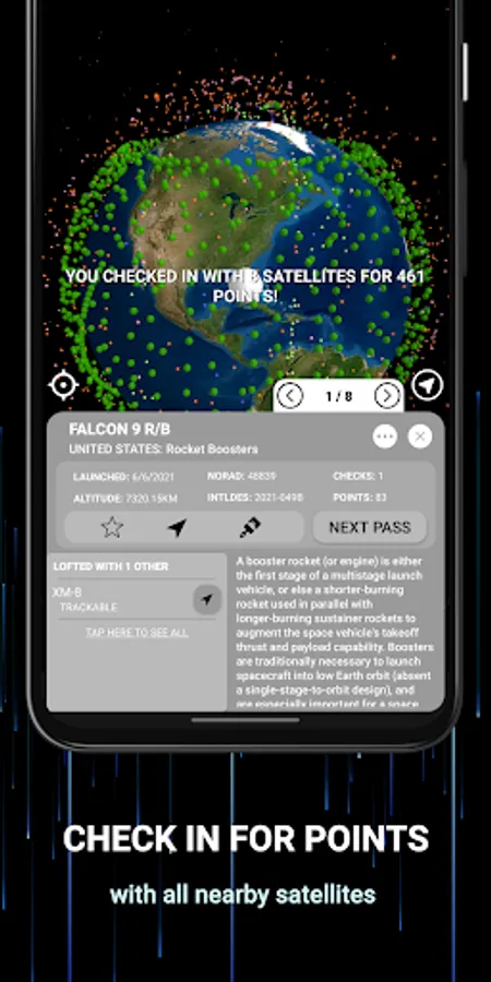 7. Check in with nearby satellites for points to compete on the leaderboard