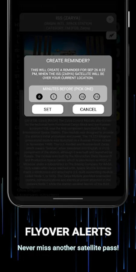 4. Find out when a satellite will be overhead, and set reminders in seconds