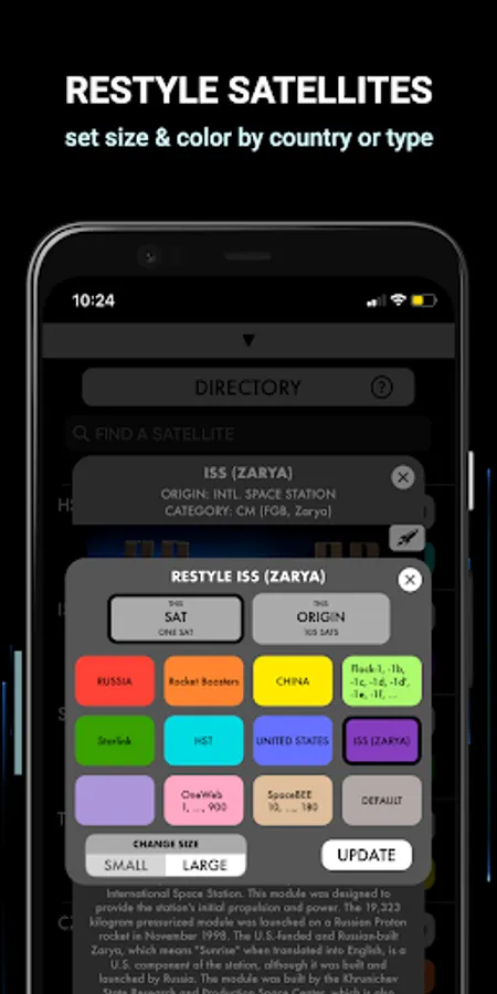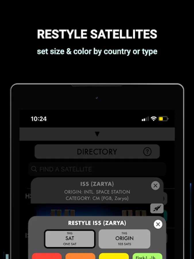 8. Restyle a satellite’s size & color by its origin, its type, or individually