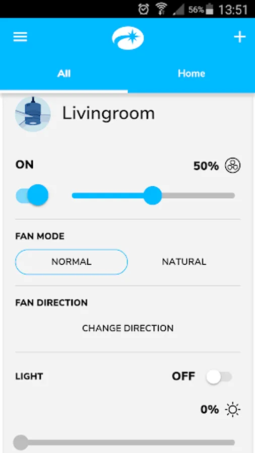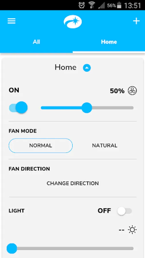 After pairing with Satellite Wi-Fi Controller, you can turn your fan on/off, change speeds and control your light kit including dimming feature from your app.