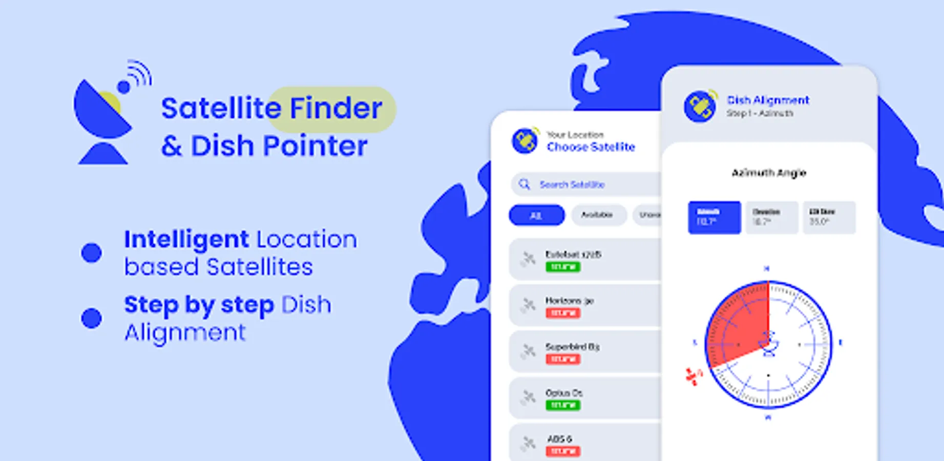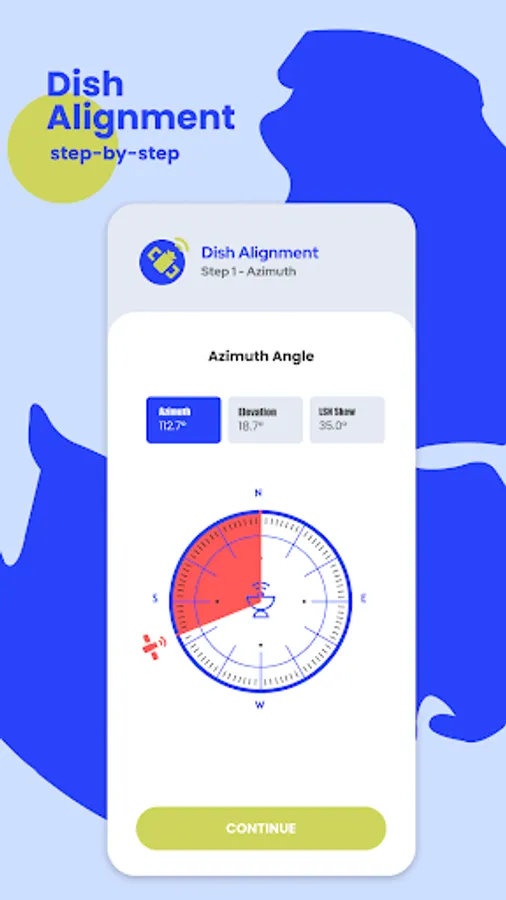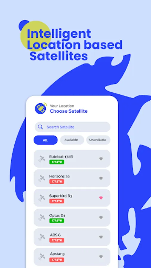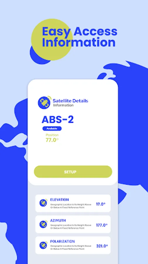 Once you've chosen a satellite, you'll be able to view a variety of information relevant to your installation, including its geographical zone, longitude, accessible band frequencies, and Azimuth, Elevation, and Polarisation angles determined depending on your position.