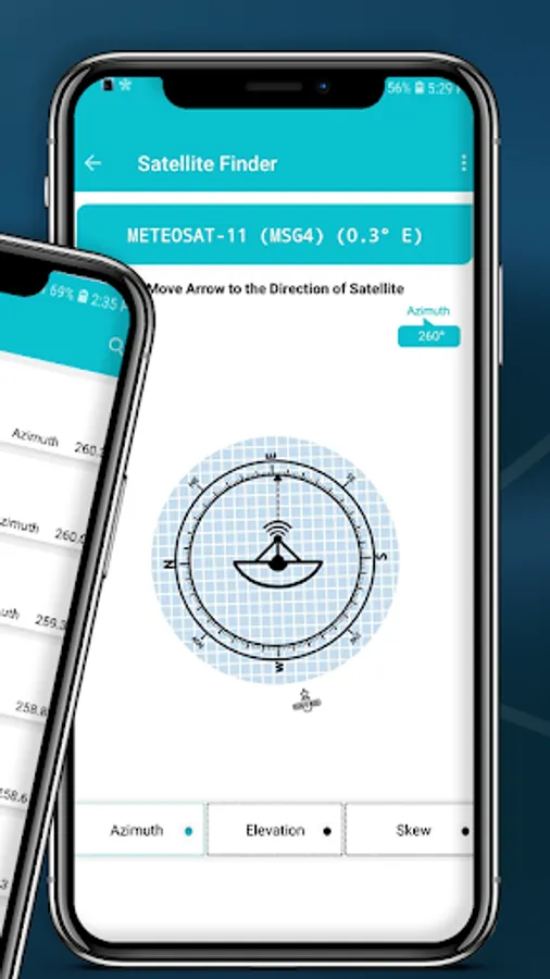 Easily align your dish with Compass feature in satellite finder app. The satellite view app uses your device's built-in compass to guide you in the right direction and ensure that your dish is pointed accurately at the satellite.With the Compass feature, setting your dish.