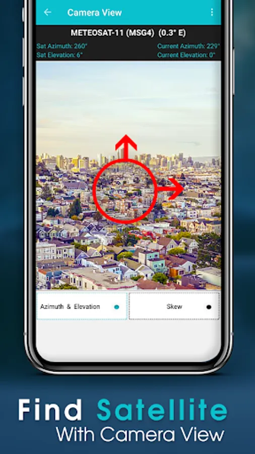 6.Use the satfinder app AR Camera View feature to overlay satellite information and dish alignment onto the real world.