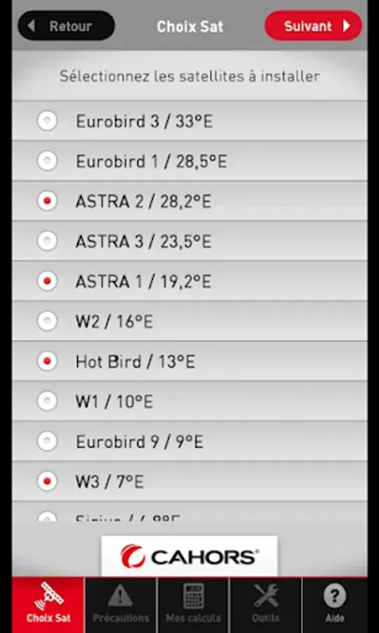 2. Select the desired Satellite by clicking on Satellite Finder Button, then Satellite Name and click on Search bar at the end. A list of sattelite