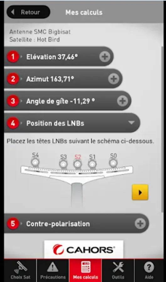 Give you LNB tilt for your location (gps)