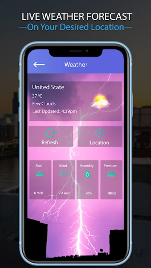 Realtime temperature, humidity, pressure, wind force and wind direction are all in this weather app based.